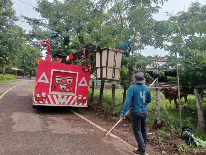 องค์การบริหารส่วนตำบลโนนงาม ออกให้บริการประชาชน ในการตัดตกแต่งกิ่งไม้ บ้านม่วงโป้ หมู่ที่ ๒ ตำบลโนนงาม