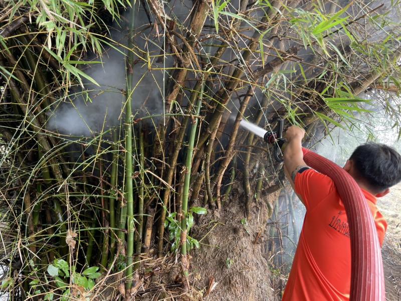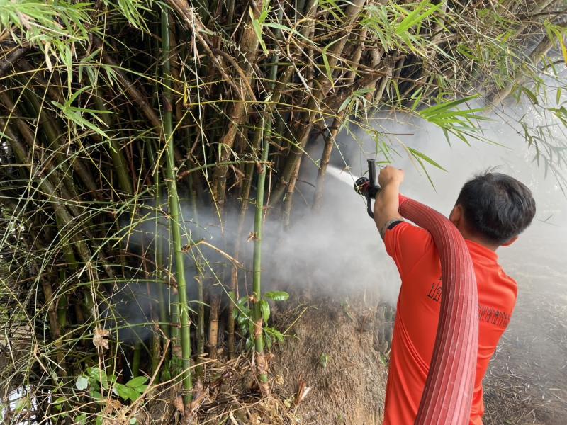 องค์การบริหารส่วนตำบลโนนงาม ออกให้บริการประชาชน ในการช่วยดับไฟไหม้กอไผ่ ที่นา นายสมัย แสงอ่อน บ้านโนนงาม หมู่ที่ 3 ตำบลโนนงาม