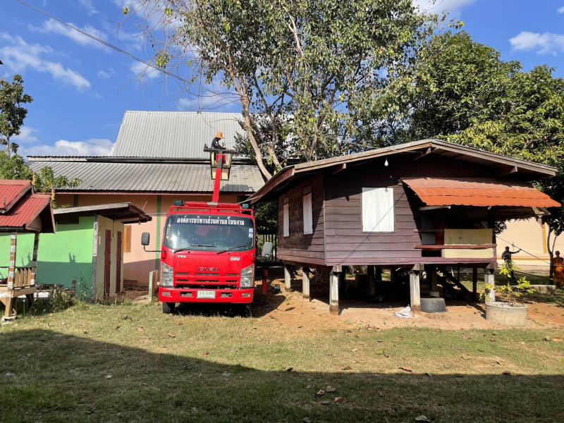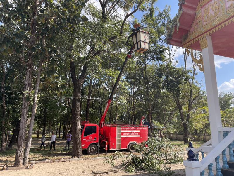 งานป้องกันและบรรเทาสาธารณภัยองค์การบริหารส่วนตำบลโนนงาม ออกให้บริการชุมชนในการตัดกิ่งไม้ที่บริเวณวัดอัมพวัน บ้านม่วงโป้ ตำบลโนนงาม