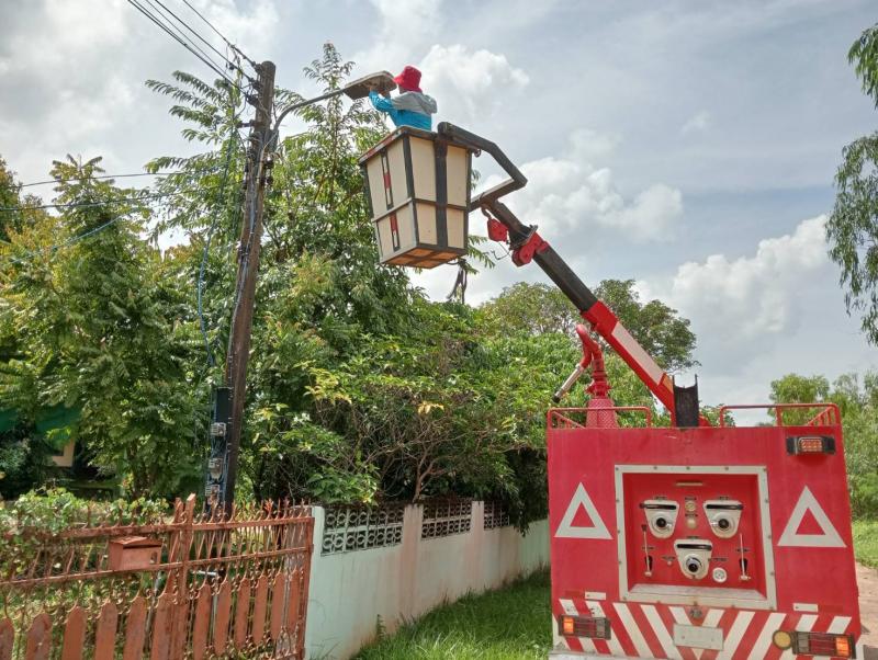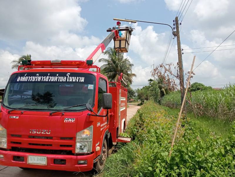 องค์การบริหารส่วนตำบลโนนงาม ออกให้บริการประชาชนในการซ่อมแซมไฟฟ้าส่องสว่างสาธารณะภายในหมู่บ้าน บ้านนาเรือง หมู่ที่ ๗ และบ้านสนามชัย หมู่ที่ ๘ ตำบลโนนงาม