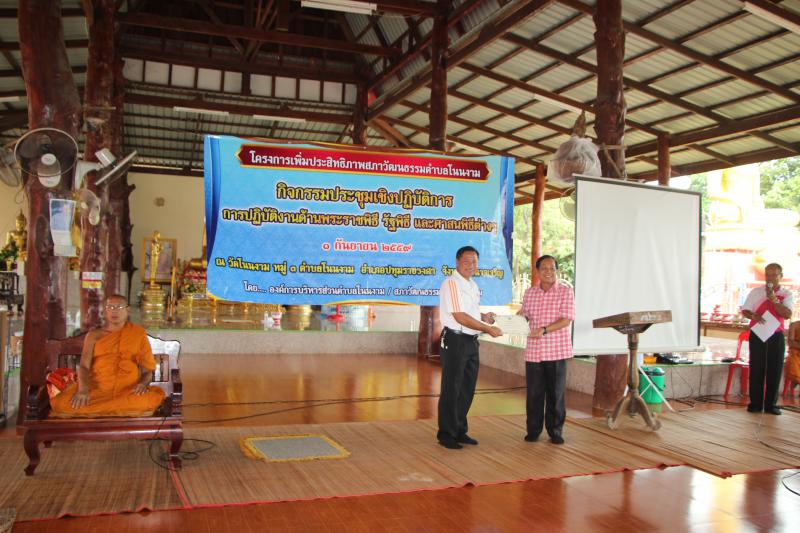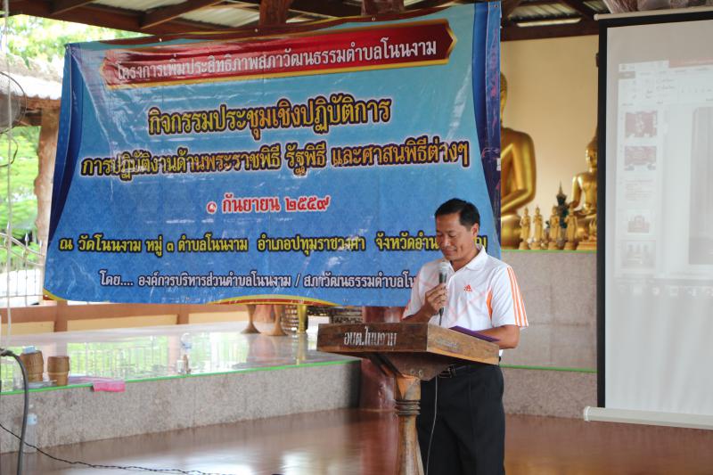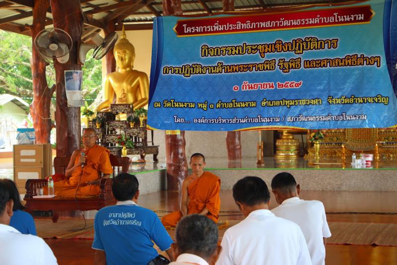 กิจกรรมประชุมเชิงปฏิบัติการ การปฏิบัติงาน ด้านพระราชพิธี รัฐพิธี และศาสนพิธีต่างๆ วันที่ 1 กันยายน 2559 ณ วัดโนนงาม หมู่ 3 ต.โนนงาม อ.ปทุมราชวงศา จ.อำนาจเจริญ โดยองค์การบริหารส่วนตำบลโนนงาม / สภาวัฒนธรรมตำบลโนนงาม