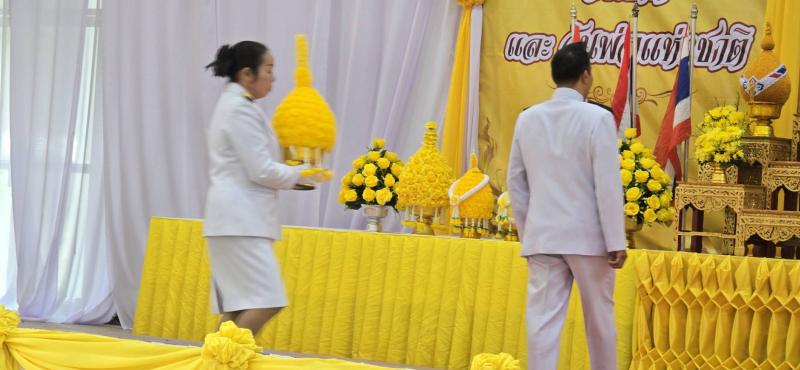 องค์การบริหารส่วนตำบลโนนงาม ร่วมพิธีวางพานพุ่มดอกไม้ถวายราชสักการะ เนื่องในวันคล้ายวันพระบรมราชสมภพ พระบาทสมเด็จพระบรมชนกาธิเบศร มหาภูมิพลอดุลยเดชมหาราช บรมนาถบพิตร วันชาติ และวันพ่อแห่งชาติ ณ หอประชุมอำเภอปทุมราชวงศา