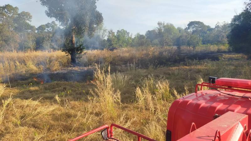 องค์การบริหารส่วนตำบลโนนงาม ออกให้บริการประชาชน ในการดับไฟไหม้ทุ่งนา บริเวณหอประปา หมู่ที่ ๔ บ้านโนนงาม ตำบลโนนงาม