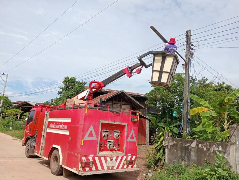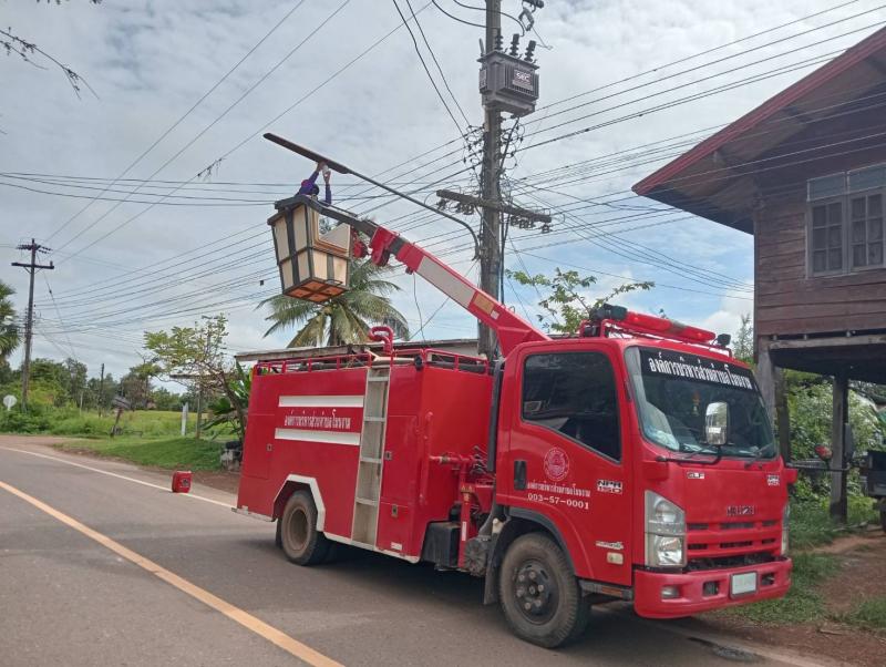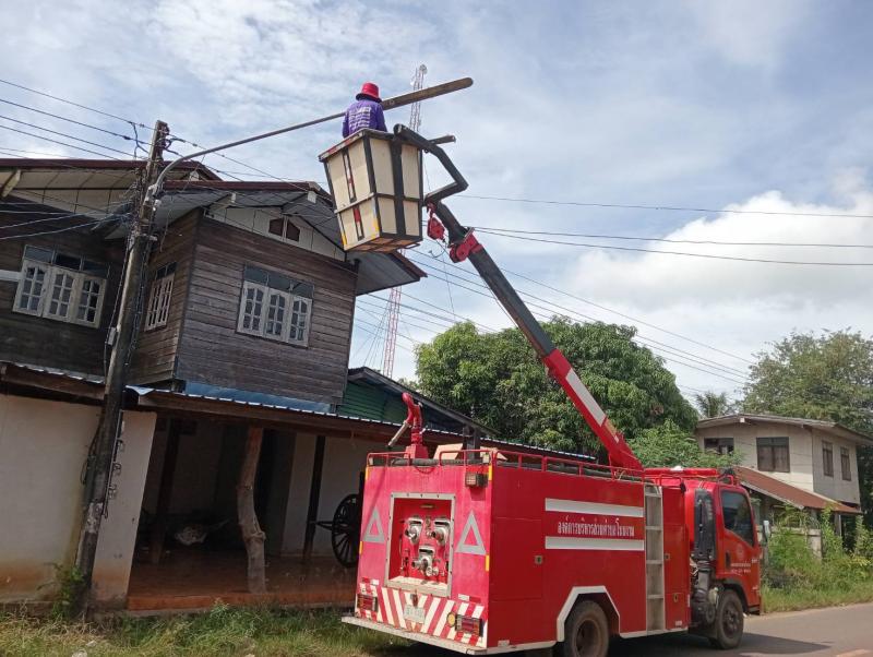 องค์การบริหารส่วนตำบลโนนงาม ออกให้บริการประชาชนในการซ่อมแซมไฟฟ้าส่องสว่างสาธารณะภายในหมู่บ้าน บ้านม่วงโป้ หมู่ที่ ๑ ตำบลโนนงาม