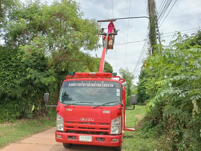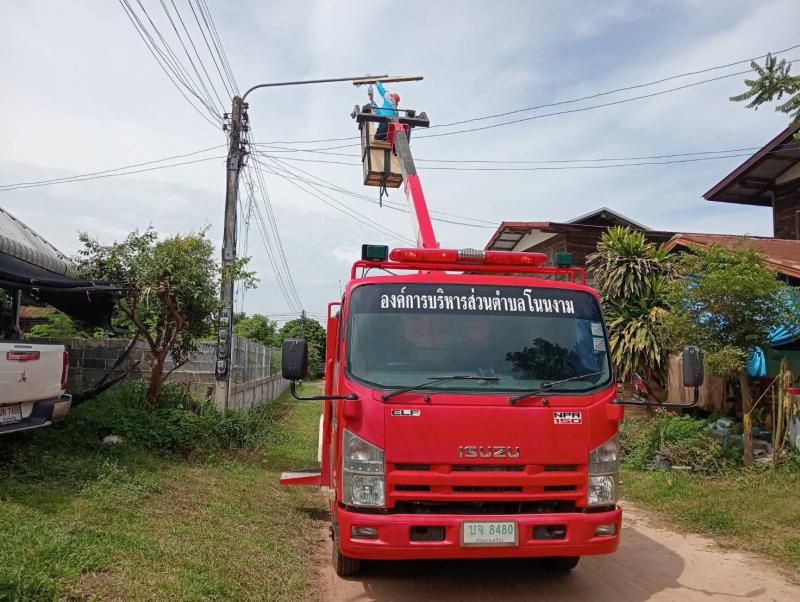 วันที่ ๓ กรกฎาคม ๒๕๖๗ องค์การบริหารส่วนตำบลโนนงาม ออกให้บริการประชาชนในการซ่อมแซมไฟฟ้าส่องสว่างสาธารณะภายในหมู่บ้าน บ้านม่วงโป้ หมู่ที่ ๒ ตำบลโนนงาม