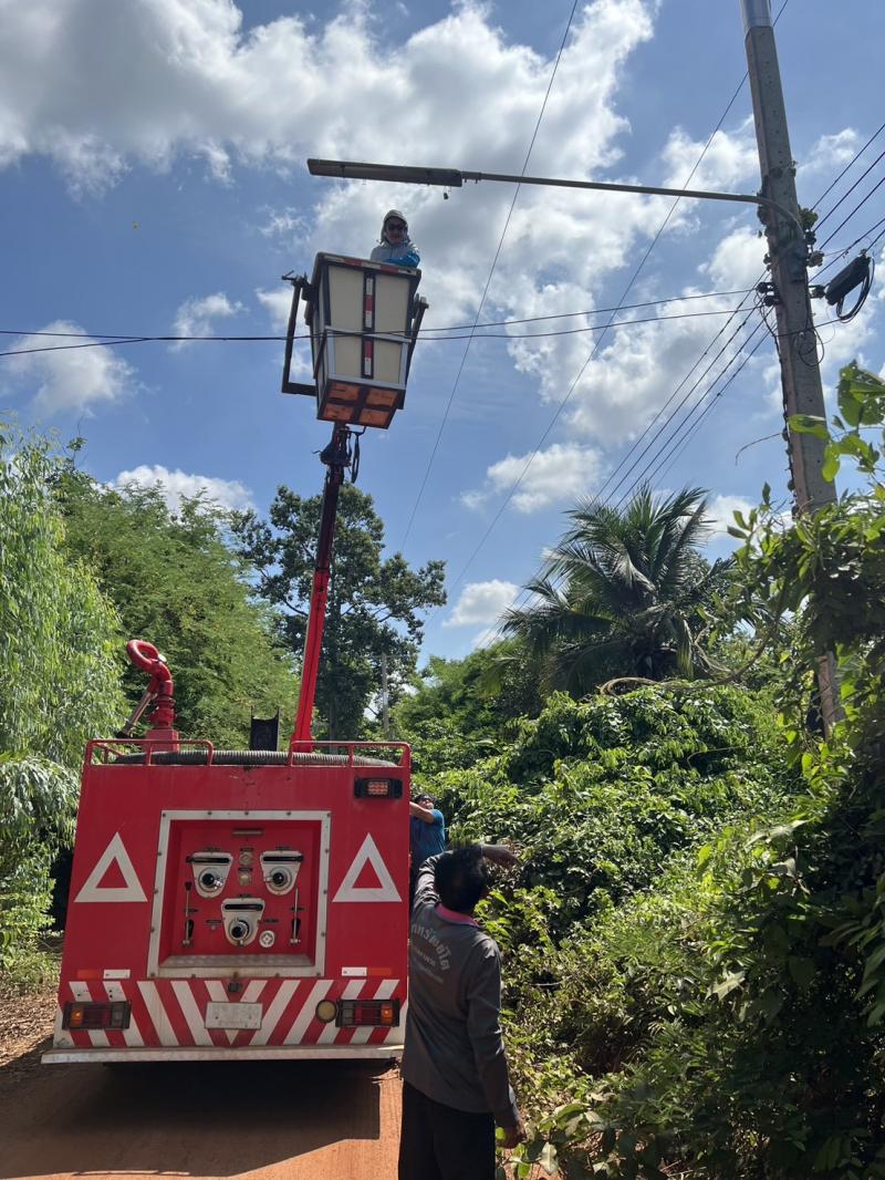 องค์การบริหารส่วนตำบลโนนงาม ออกให้บริการประชาชนในการซ่อมแซมไฟฟ้าส่องสว่างสาธารณะภายในหมู่บ้าน หมู่ที่ ๔ ตำบลโนนงาม