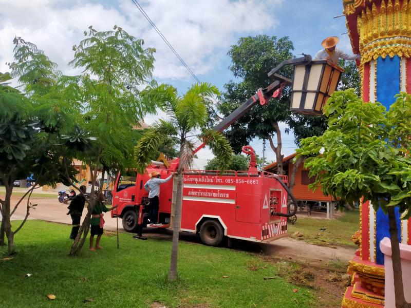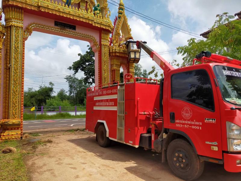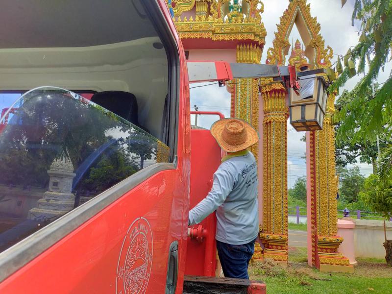 งานป้องกันและบรรเทาสาธารณภัยองค์การบริหารส่วนตำบลโนนงาม ร่วมทำความสะอาดซุ้มประตูทางเข้าวัดอัมพวัน กับประชาชนตำบลโนนงาม เพื่อเตรียมงานบุญสังฆทาน ในวันที่ 11 ตุลาคม 2566 ตามที่ผู้ใหญ่บ้านขอความร่วมมือ