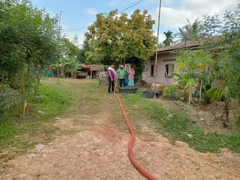 องค์การบริหารส่วนตำบลโนนงาม ออกให้บริการประชาชนในการส่งน้ำเพื่ออุปโภค บ้านม่วงโป้ หมู่ที่ ๒ ตำบลโนนงาม เนื่องจากน้ำประปาอยู่ในระหว่างการซ่อมแซม