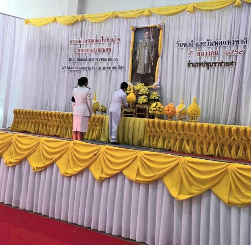 วันศุกร์ที่ ๕ ธันวาคม ๒๕๖๘ วันศุกร์ที่ ๕ ธันวาคม ๒๕๖๘ องค์การบริหารส่วนตำบลโนนงาม นำโดย นายอธิภัทร วรรณโสภา รองปลัดองค์การบริหารส่วนตำบล พร้อมด้วย หัวหน้าส่วนราชการ พนักงานจ้าง ร่วมพิธีเจริญพระพุทธมนต์และทำบุญตักบาตรถวายพระราชกุศล และถวายพานพุ่ม เนื่องในวันคล้ายวันพระบรมราชสมภพ พระบาทสมเด็จพระบรมชนกาธิเบศร มหาภูมิพลอดุลยเดชมหาราช บรมนาถบพิตร วันชาติ และวันพ่อแห่งชาติ ๕ ธันวาคม ๒๕๖๘ ณ หอประชุมที่ว่าการอำเภอปทุมราชวงศา