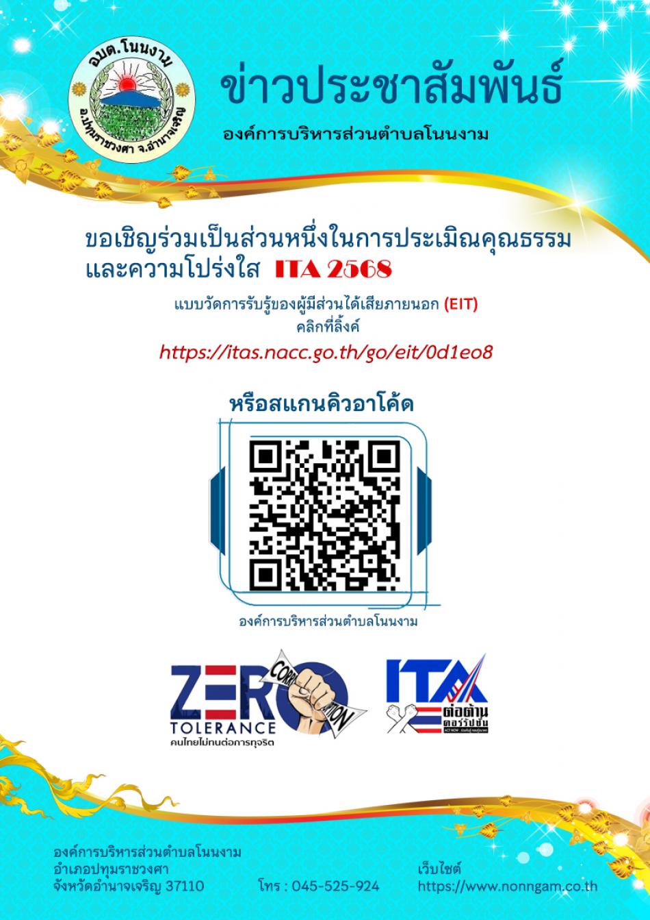 info แบบประเมินคุณธรรมและความโปร่งใส 2568 info E-SERVICE info One Stop Service : OSS camera_alt ภาพกิจกรรม insert_drive_file ข่าวประชาสัมพันธ์ chat_bubble ประกาศจัดซื้อจัดจ้าง cast ระบบการจัดซื้อจัดจ้าง egp public QR cord แบบวัดการรับรู้ของผู้มีส่วนได้เสียภายนอก(EIT)ส่วนราชการ