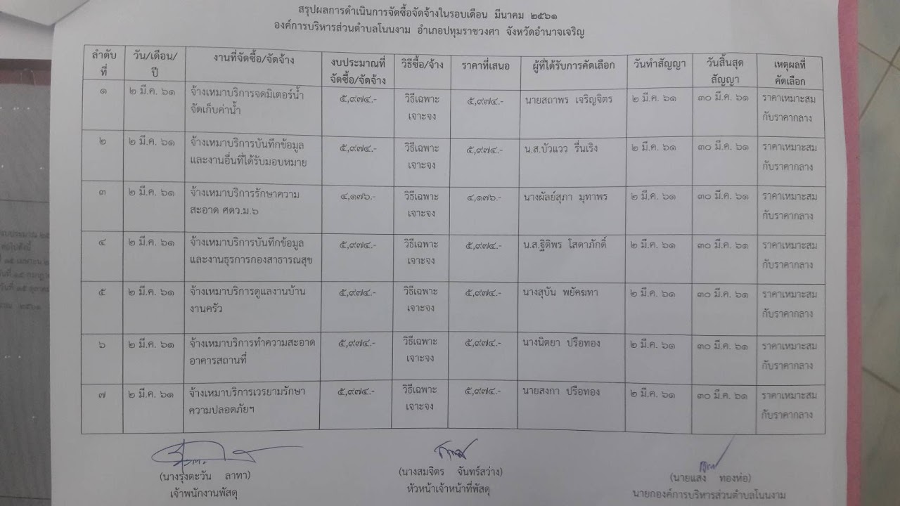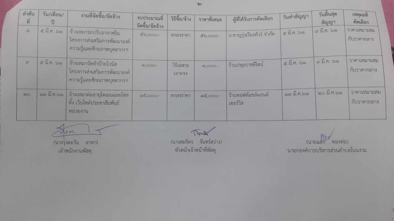 สรุปผลการดำเนินการจัดซื้อจัดจ้างในรอบเดือน มีนาคม 2561