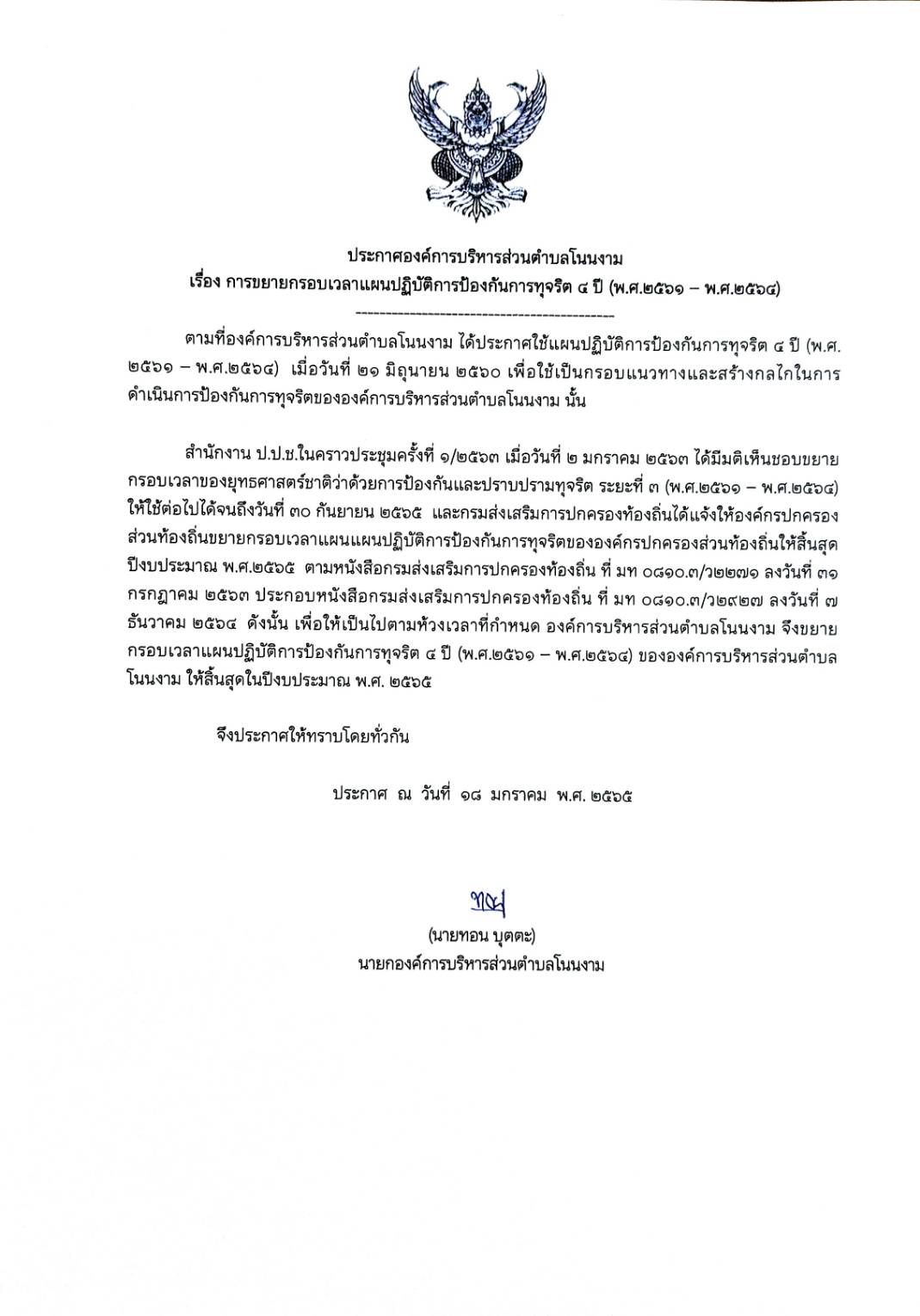 ประกาศขยายกรอบเวลาแผนปฏิบัติการป้องกันการทุจริต พ.ศ.2561-พ.ศ.2564