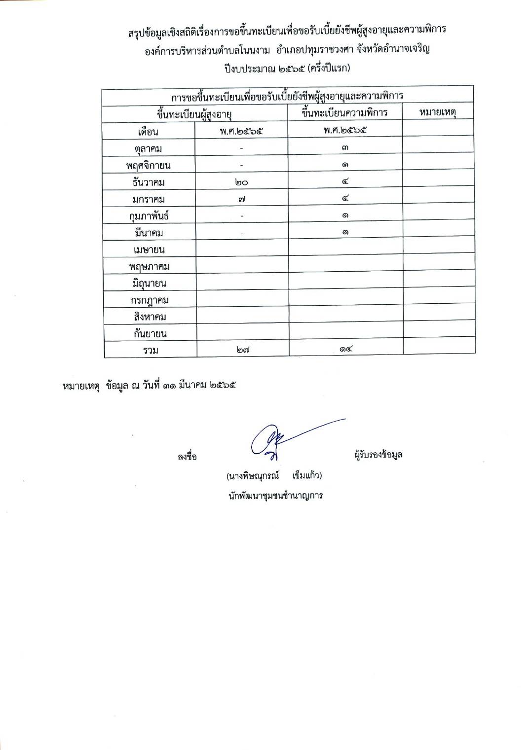 ข้อมูลเชิงสถิติการขอขึ้นทะเบียนเพื่อขอรับเบี้ยยังชีพผู้สูงอายุและเบี้ยความพิการ ปี 2565 ครึ่งปีแรก